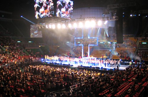 奉主名来的和散那,当倍受大赞美!众人都一同聚集,争着要做他的百姓!撒但已经完败,耶稣基督已主宰天下,祂的统治永无止境!(参诗篇47)