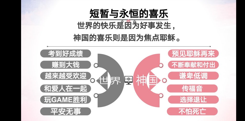 上帝预言亚伯拉罕成为大国,却只给了他一个以撒;上帝预言约瑟的地位超越全家人,却让他成为囚犯;上帝膏抹大卫为王,却让他做扫罗的跟班。今天同样的,上帝给我们领受的异象和应许,往往都不会马上成真,甚至会让我们吃尽苦头。如果我们太注重在自己的感受,我们就会灰心失望。所以我们不该太在乎,上帝给我们的祝福和应许何时会发生。我们当在乎的是,耶稣肯定会再来,圣徒肯定会复活,耶稣和众圣徒肯定会以神的爱统治这世界。