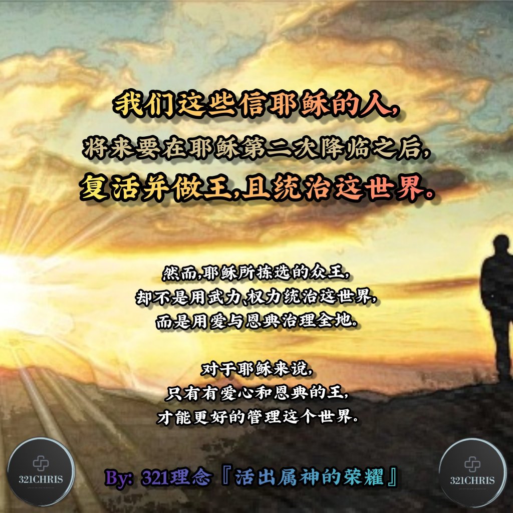 然而,耶稣所拣选的众王,却不是用武力、权力统治这世界,而是用爱与恩典治理全地。对于耶稣来说,只有有爱心和恩典的王,才能更好的管理这个世界。