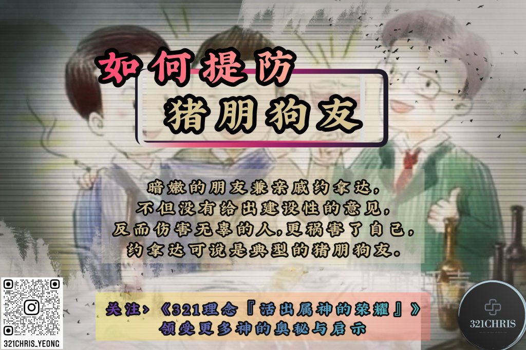 今天同样的,在我们的身边也很多像是约拿达这类型的人。他可能比我们年纪大,也可能和我们年纪相仿。平时乍看之下,不爱闹事,又很温和有礼。但私下却会讲人的坏话,或教唆我们应该要如何去对抗谁,更可能会支持我们做一些坏事。