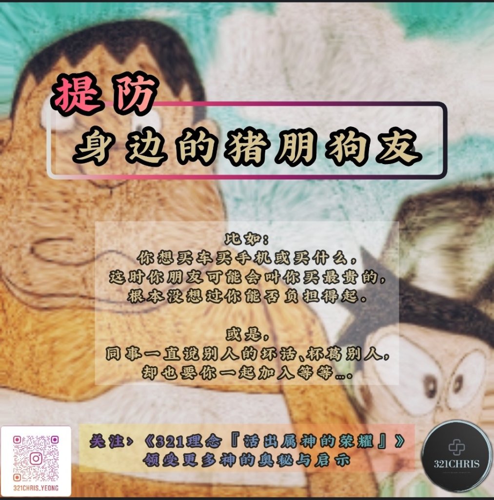 当然,如果我们自己是猪朋狗友,我们是不会发觉的。我们要做的不只是提防别人而已,更要在各方面(知识、能力、品格)提升自己。