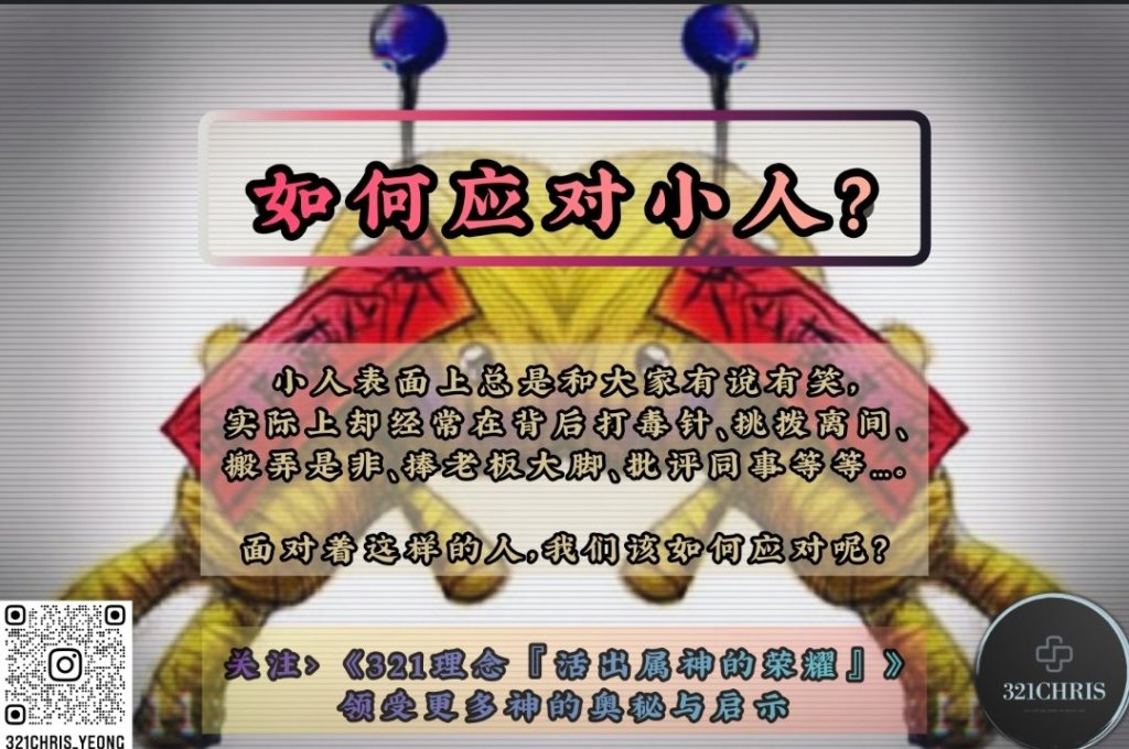 那面对着这样的人,我们该如何应对呢?把他的一举一动告诉给老板?那老板相信你吗?还是把他的一举一动公告于网络,让全部人公审他?那你确定他不会做一样的事,反而是你被网络公审吗?又或是,他做过了什么,就做回一样的事情回敬给他?那你确定他不会回敬你?你确定你能比小人更能小人吗?如果你能,那你有没有想过,身边的人看见你和小人这样斗,他们会怎样看你呢?