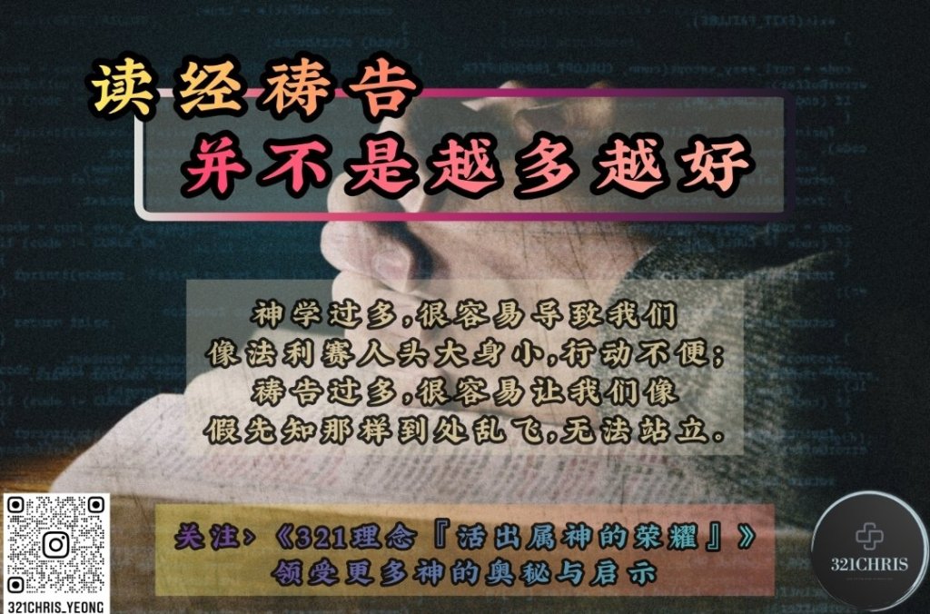 别误会我的意思,我没有否认上帝的能力,更没有否认祷告的必要。但祷告很重要,并不能代表祷告越多越好。就好像再营养的食物,只要摄取过多,都会营养过剩而伤害身体,读经和祷告也同理。