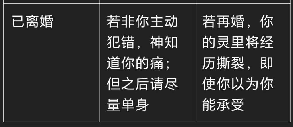 同样,一个女人若在未有盟约的前提下,为了利益、压力、安全感与人发生关系,不仅伤害了自己,也等于将圣洁的象征交在不配的手中。
