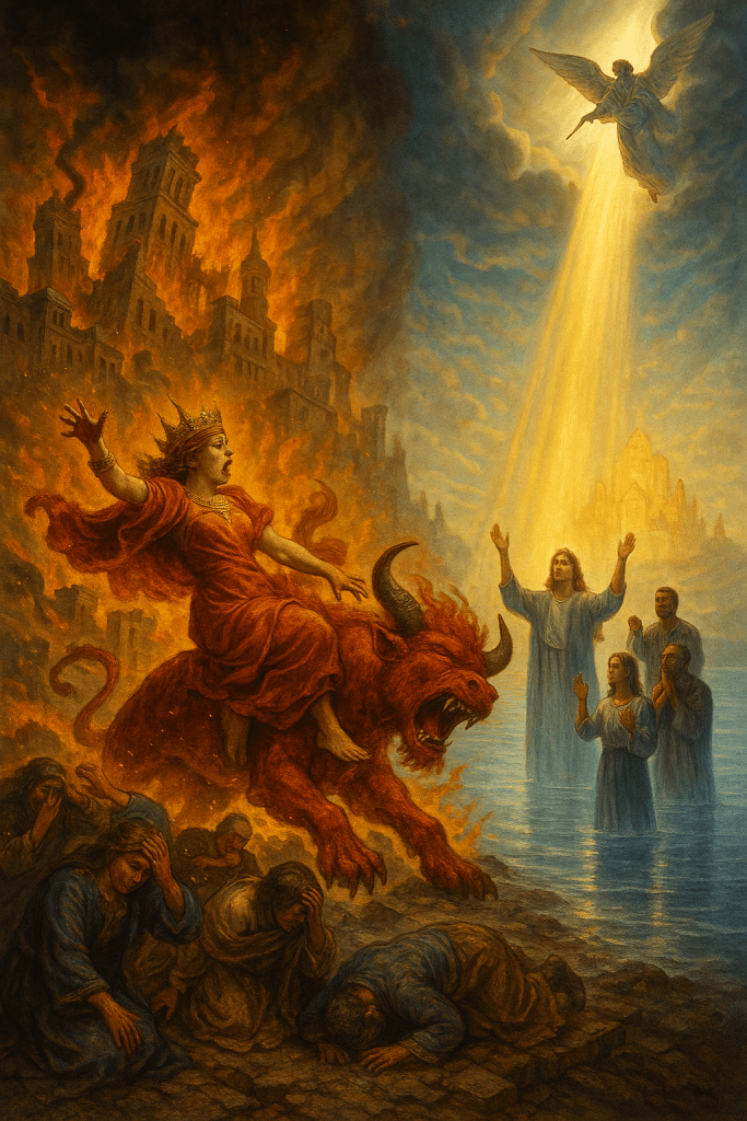 启示录17章明言:“淫妇使列国富足”。但最终,红兽联盟(经济导向的列国)将翻脸吞吃她——她一切的荣耀、权势、财富与人气,将如同泡沫般被撕裂殆尽。